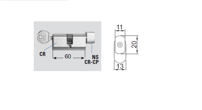 Oval cylinder key / nob for locks V-900 / V-780 / V-584 / V-585 / V-594